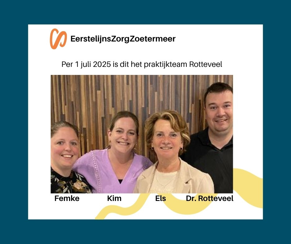 De vertrouwde gezichten Els en Kim blijven aanwezig aan de balie en de telefoon. Samen met huisarts Rotteveel en het team staan zij klaar voor alle vragen en medische zorg.